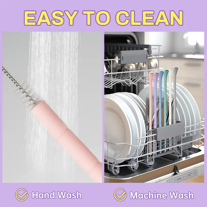 ·Food-Grade Safe Material: Made from safe, non-toxic, food-grade silicone, this straw comes with a cleaning brush and is both hand wash and dishwasher safe, ensuring cleanliness and safety with every use.