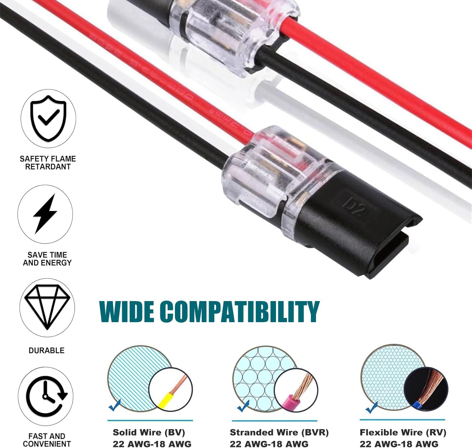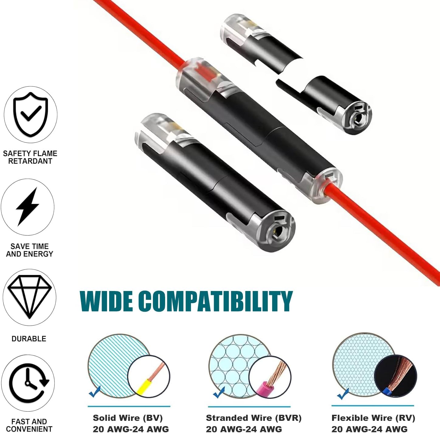 ★ Reusable & Efficient - Suitable for flexible wires and hard wires. Each connector designed with independent shrapnel for different wires. and different diameters can be connected for safety.