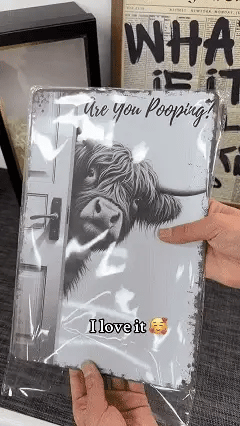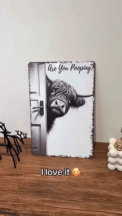 ⏳LAST DAY SALE 49% OFF🔥Vintage Highland Cow Aluminum Sign: Funny "Are You Pooping?" Black and White Bathroom Wall Decor