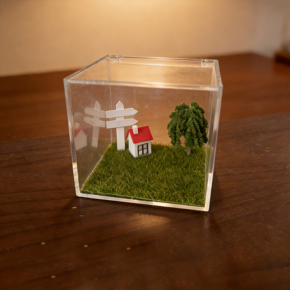 3D Video Projection House: This keepsake features a high-transmittance made of acrylic, adorned with artificial turf ,decorations for added beauty; Perfect as a decorative centerpiece for shelves or desks