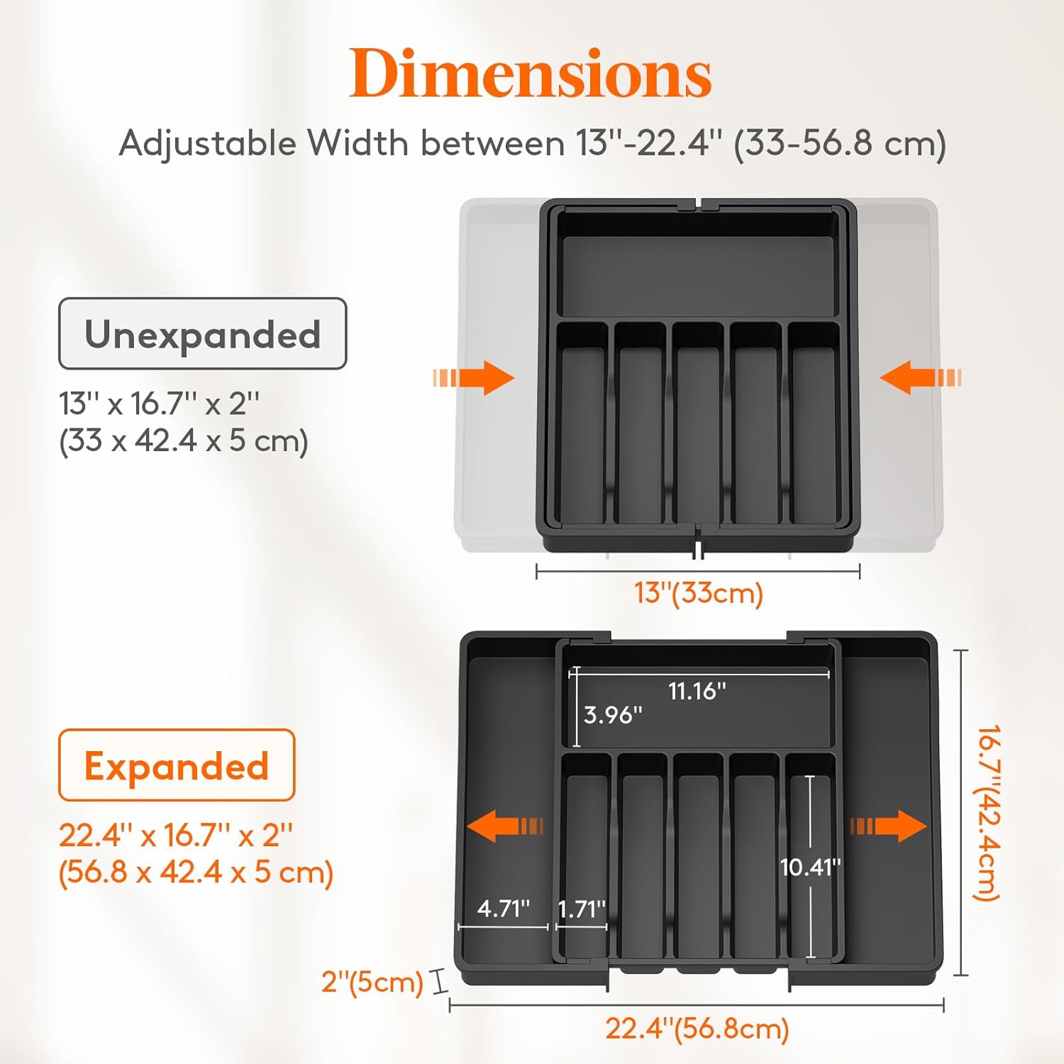 β Expandable from 13β to 22.4β wide β Perfect for any drawer size