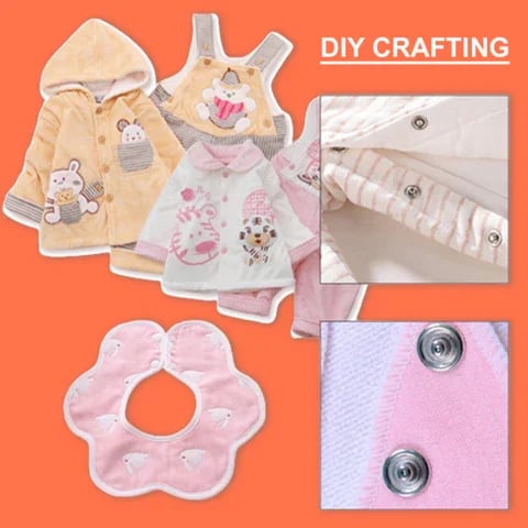 This snap-button tool kit is enough to meet your different needs in DIY crafts or making thin clothes. It can be applied to baby bibs crawling clothes hats shirts baby jumpsuits saliva towels barbie/doll clothes pet clothes or other places you need it.